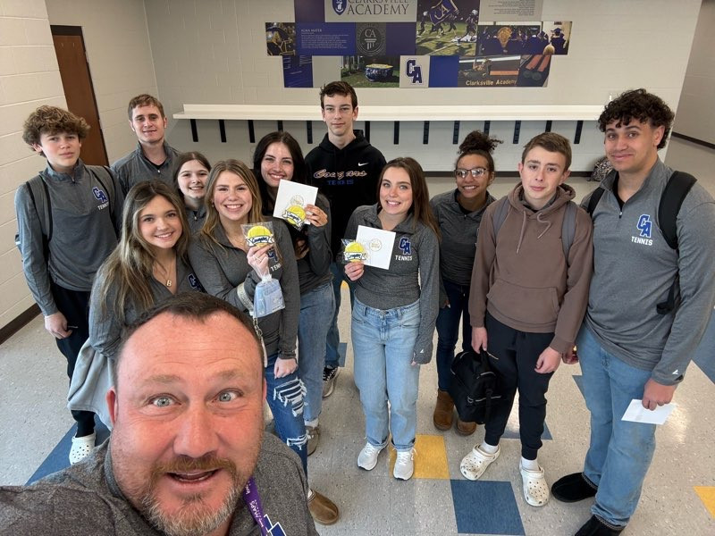 2024/2025 Cougars take the time to share cookies and invitations to their upcoming season matches with faculty and teachers.