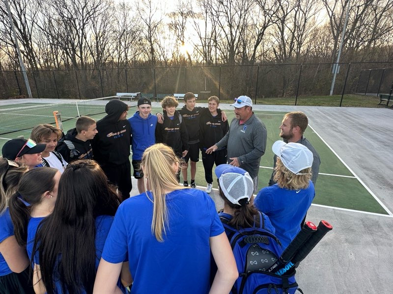 Cougars Tennis take a moment to a huddle and reflect on the days match against Goodpasture.